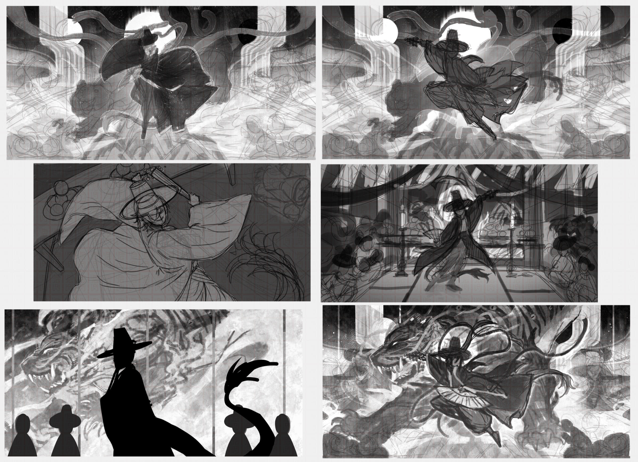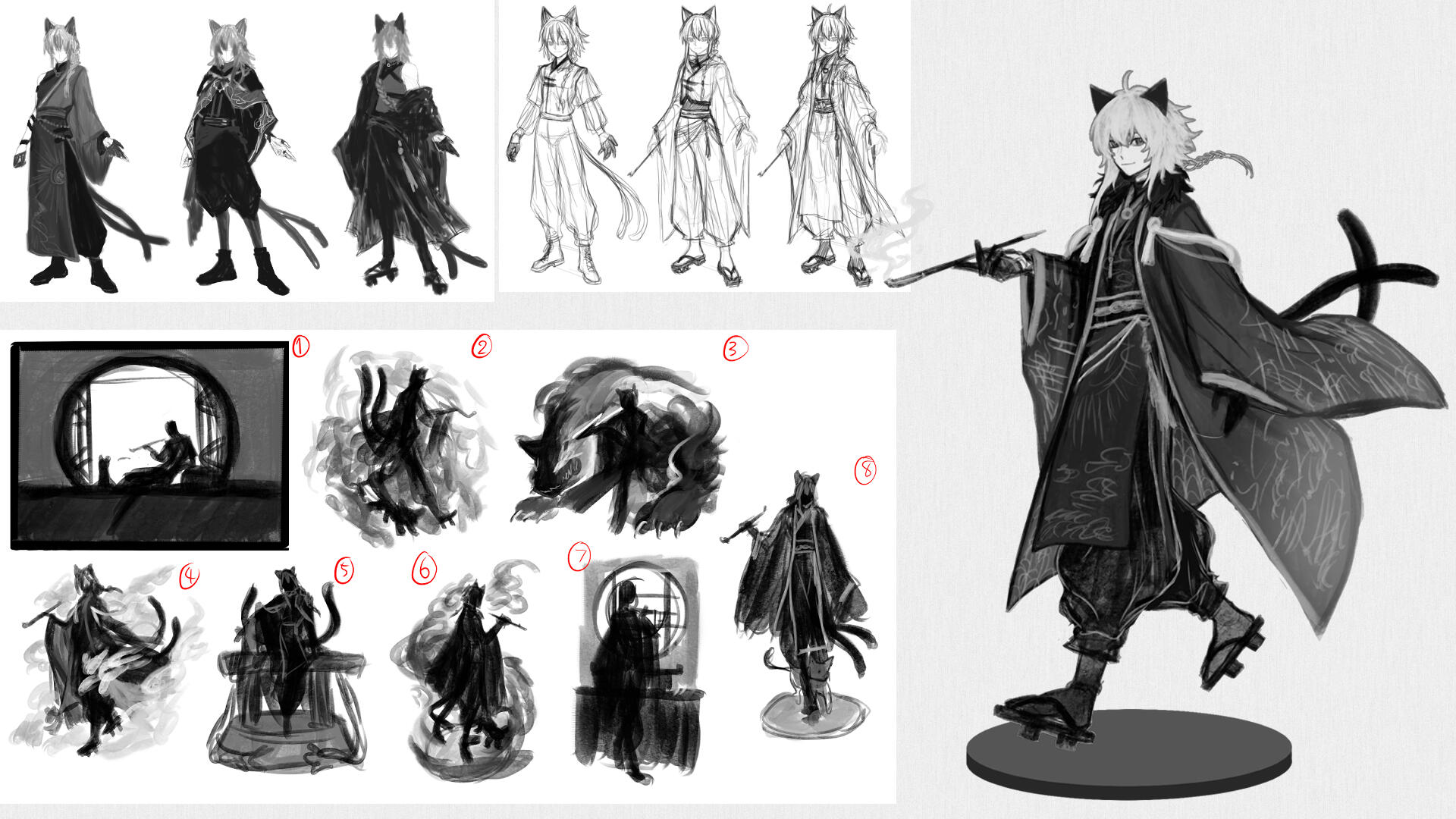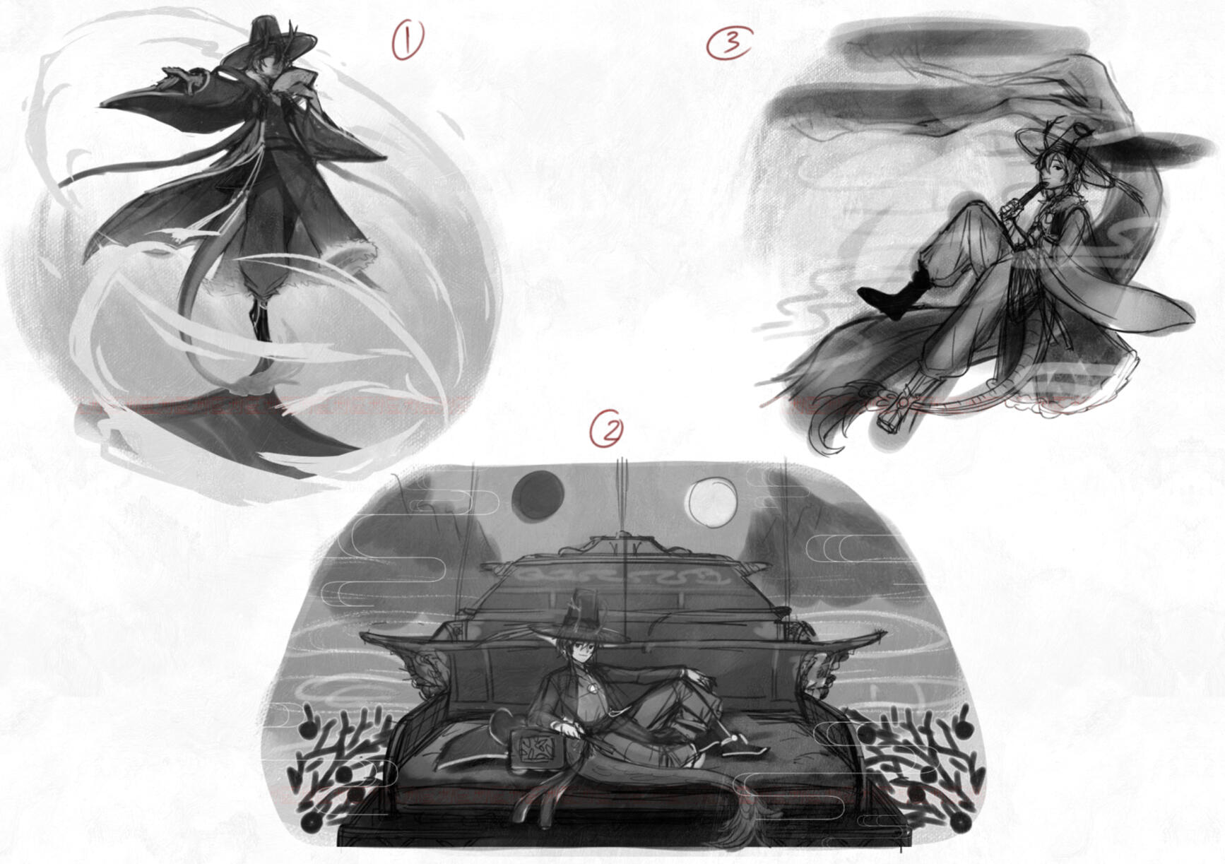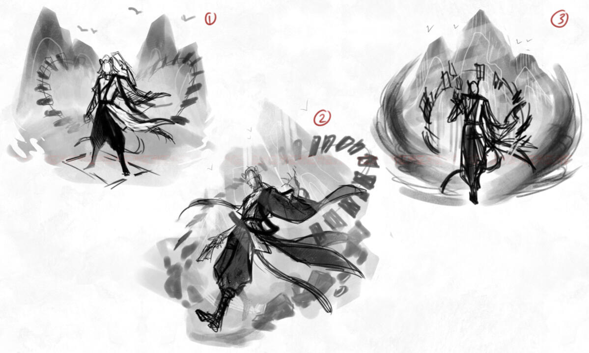 Sketch > paid > continue work > revision > finish